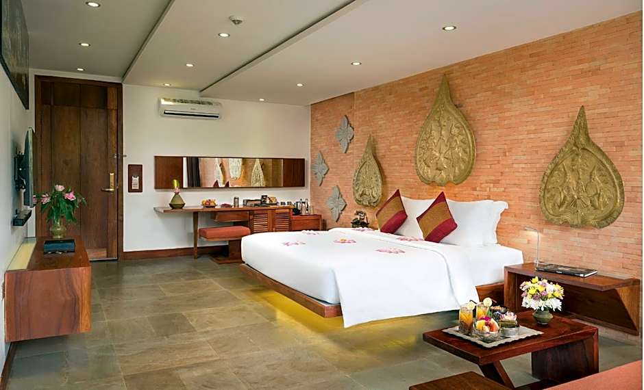 Featuring traditional Cambodian art and handicraft decorations, this largest suite features a daybed, a living room with a sofa and wooden furniture as well as an private bathroom. For added convenience, guests will find tea and coffee making facilities, a smart TV and Bluetooth speakers. A mini-bar, a coffee machine and an ironing facilities. - Free signature welcome drink & Banana Chip, Roasted Peanut with organic herbs & cold towel - Free fresh fruit platter upon arrival in the room - For 2 Night Stay Free one-time lunch of Khmer set menu at Roatt Restaurant Or Mesa Restaurant - Spa Credit with value of USD20 each per stay at our Lotus Spa - Buy one get one free at our Rohatt pool from 3-7 PM - Free high-speed internet Wifi in-room and public area - Free daily turndown service - Free use of baby cot for traveling family - 25% OFF laundry service - 25% OFF Spa